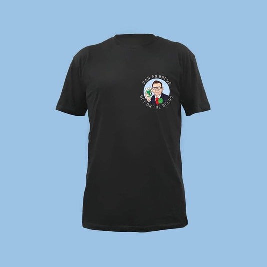 GET ON THE BEERS: BLACK FRONT AND BACK